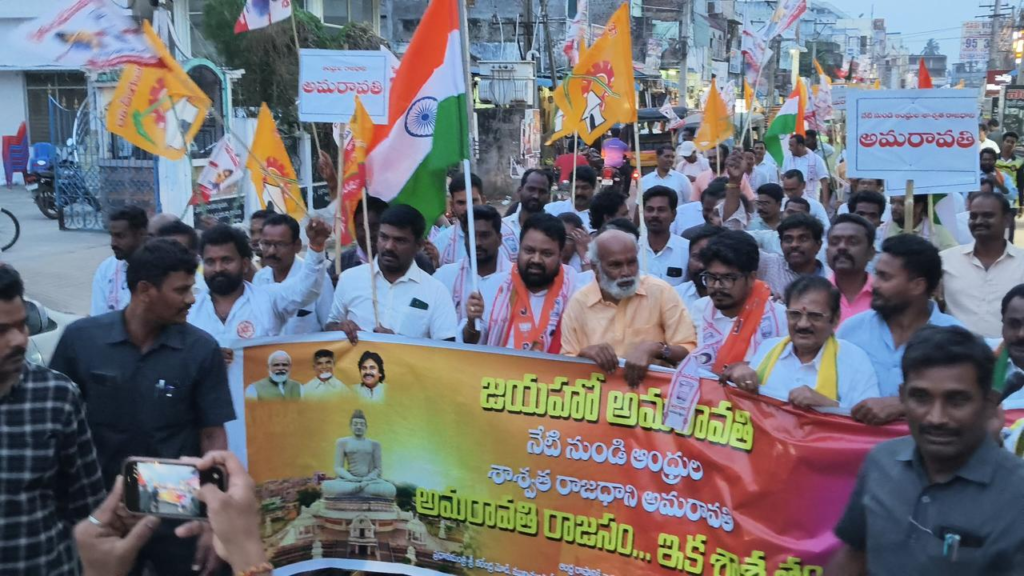 పాలకొండ: ఆంధ్రప్రదేశ్ శాశ్వత రాజధానిగా అమరావతికి పార్లమెంట్‌లో చట్టబద్ధత లభించిన సందర్భంగా పాలకొండ నియోజకవర్గంలో ఆనందోత్సాహాలు వెల్లివిరిశాయి. ఈ సందర్భంగా నగర పంచాయతీ పరిధిలోని దుర్గ గుడి నుండి యాలం జంక్షన్ వరకు భారీ ర్యాలీ నిర్వహించారు. ఈ ర్యాలీలో ఎమ్మెల్యే నిమ్మక జయకృష్ణ పాల్గొని ప్రజలతో కలిసి నినాదాలు చేశారు.