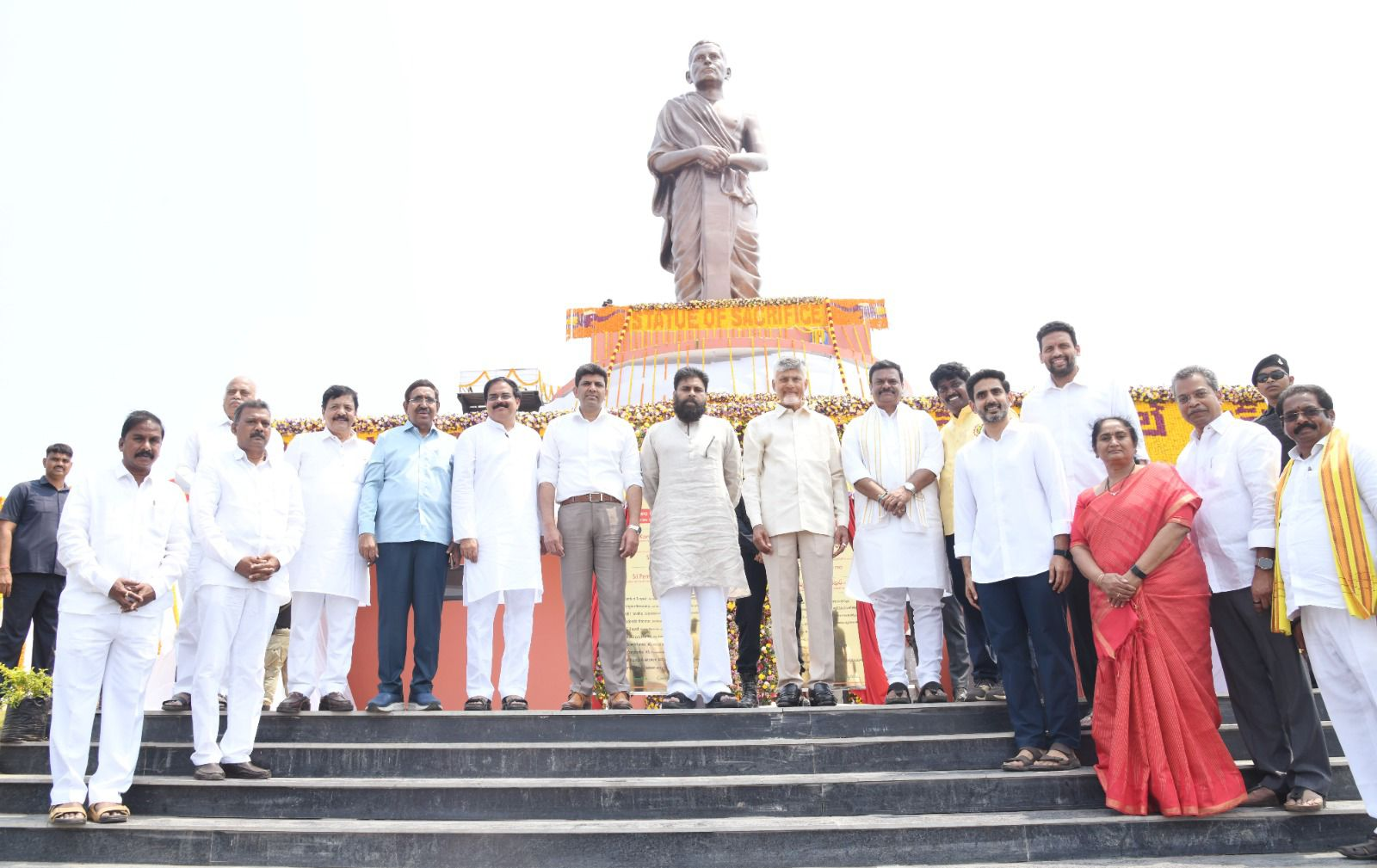 ఆ మహనీయుని చరిత్రను భవిష్యత్ తరాలు స్మరించుకునే విధంగా ఆంధ్రుల రాజధాని అమరావతిలో విగ్రహం ఏర్పాటు చేసేందుకు అమరజీవి పొట్టి శ్రీరాములు మెమోరియల్ ట్రస్ట్ కి గౌరవ ముఖ్యమంత్రి శ్రీ చంద్రబాబు నాయుడు గారి నాయకత్వంలోని కూటమి ప్రభుత్వం 6.8 ఎకరాల భూమి కేటాయించింది. ఆయన చేసిన 58 రోజుల ఆమరణ దీక్షకు గుర్తుగా 58 అడుగుల విగ్రహాన్ని ట్రస్ట్ ఇక్కడ ఏర్పాటు చేసింది. అంతకు ముందే శ్రీ పొట్టి శ్రీరాములు గారు చేసిన త్యాగానికి నివాళిగా కూటమి ప్రభుత్వం తరఫున జల్ జీవన్ మిషన్ ద్వారా చేపట్టిన మల్టివిలేజ్ స్కీమ్ వాటర్ గ్రిడ్ పథకానికి “అమరజీవి జలధార” అని పేరు పెట్టాం. దేశవ్యాప్తంగా గ్రామీణ ప్రాంతాల్లో నివసించే ప్రజలందరికీ రోజుకి 55 లీటర్ల చొప్పున స్వచ్ఛమైన తాగునీరు అందించాలన్న గౌరవ ప్రధాన మంత్రి శ్రీ నరేంద్ర మోదీ గారి స్ఫూర్తితో రాష్ట్రంలో ఈ పథకాన్ని పకడ్బందీగా అమలు చేస్తున్నాం. శ్రీ పొట్టి శ్రీరాములు గారి ఆత్మబలిదానంతో ఏర్పడిన ఈ గడ్డపై నీరు తాగిన ప్రతిసారి ఆయన త్యాగం గుర్తుకు రావాలి. ప్రతి ఆంధ్రుడు ఆయన త్యాగాన్ని స్మరించుకోవాలన్న ఉద్దేశంతో పథకానికి ఆయన పేరు పెట్టాం.